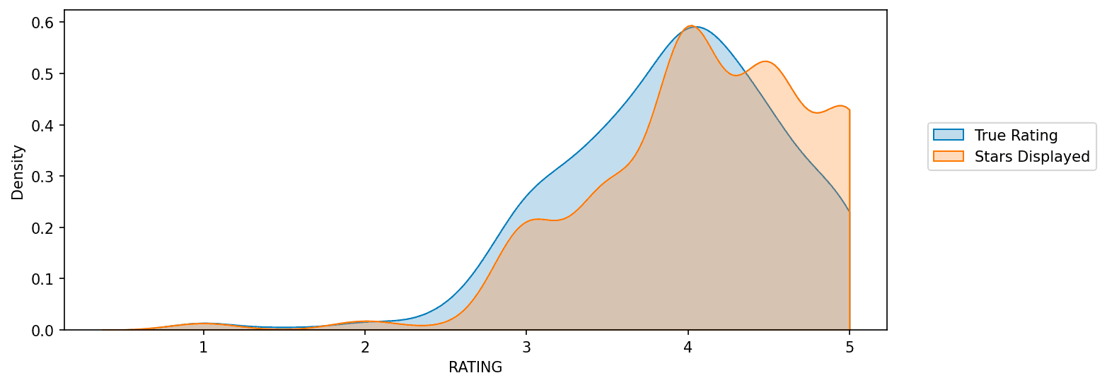 Visualizing distributions of displayed stars vs true user ratings: